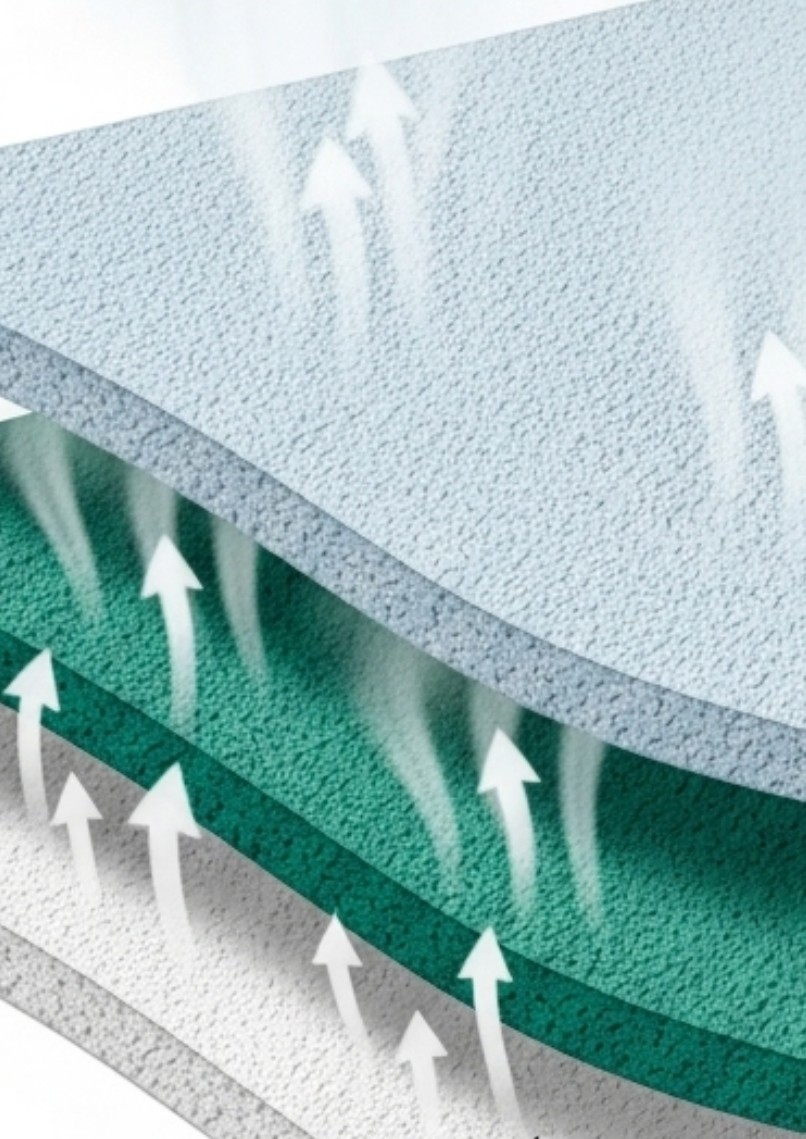 The ambient heat activates the evaporation of moisture in the EvaporPad. This process, supported by optimal contact and air circulation, effectively draws heat away from your body. The result is a cooling effect that intensifies as the outside temperature rises.